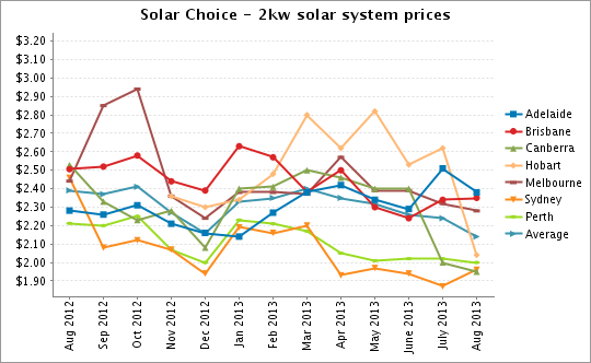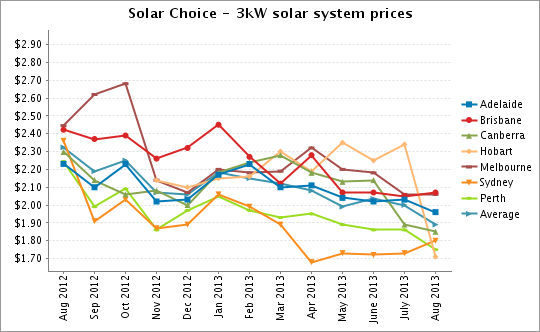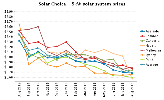 | Solar Choice: PV system prices, $/Watt – August 2013 | ||||||