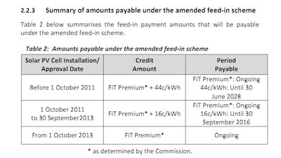 The 16c/kWh rate will apply to customers with eligible solar systems who sign up for the scheme between now and 30 September 2013. Those who apply by this deadline will be eligible to continue receiving this rate until 30 September 2016, whereas the retailers’ contribution will continue indefinitely. Those who sign up after 30 September 2013 and before 30 September 2016 will (unless the government introduces new solar incentive policy) only be eligible for the retailer’s contribution, whose rate will be reassessed annually until the end of the scheme. The retailer’s contribution is expected to continue on in this way into the near future.