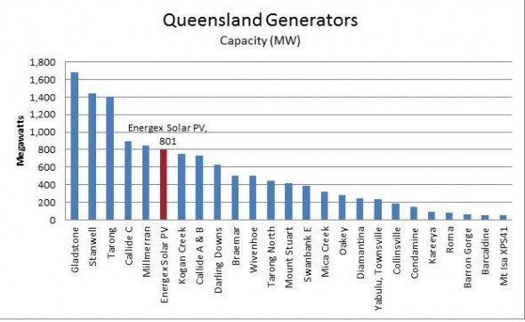 The combined capacity of rooftop solar arrays in south-east Queensland, the area managed by the energy distributor Energex, has now surpassed 800MW, making it the sixth biggest generator in the state.