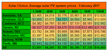 (N.b. Please see note about ‘Solar Choice Discount’ in February 2016 edition of the PV Price Index.)