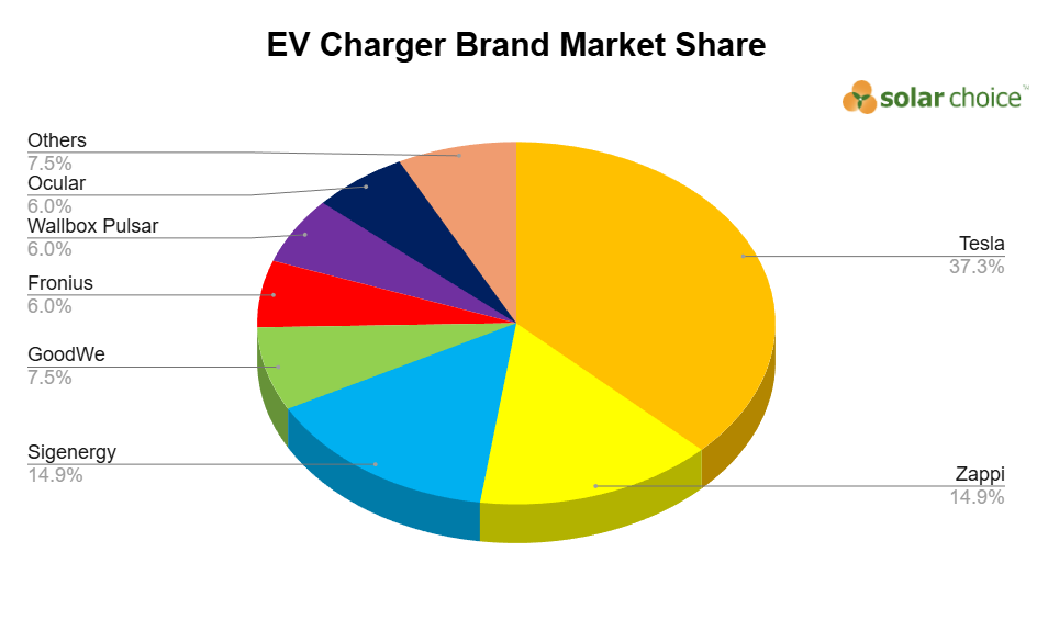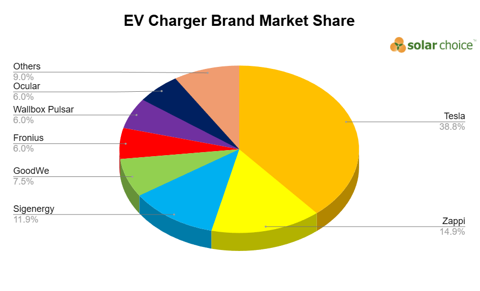 The below graph is designed to give you an overview of the most popular EV chargers on the market. The data is based on the 2 options that each of Solar Choice’s vetted installers uploads to our quote comparison tool outlining their preferred brands.