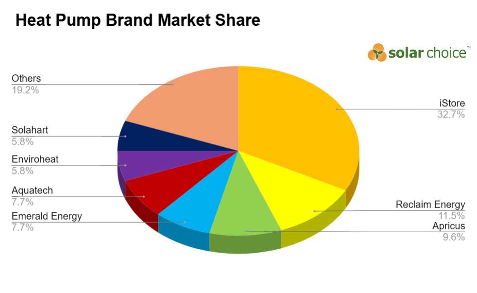Based on Solar Choice’s pre-vetted network of trusted heat pump installation companies, we publish a monthly view on what brands are being used in the quotes that are being displayed to customers. This provides an indication on the most popular heat pump hot water system brands in the market.