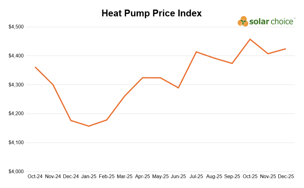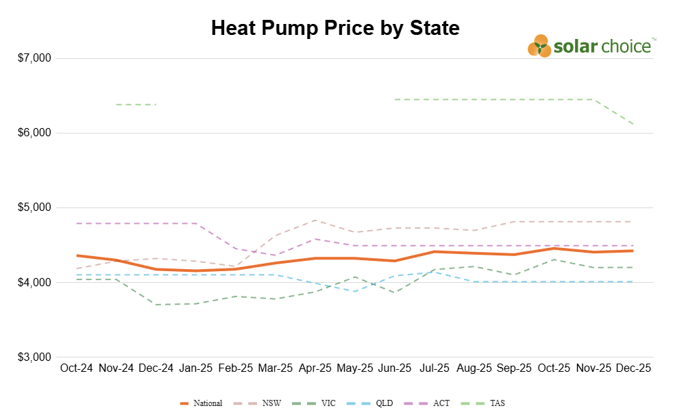 | Dec-25 | Average costs including STCs and Installation | Including State Rebates (upgrade from gas) | Including State Rebates (upgrade from electricity) |