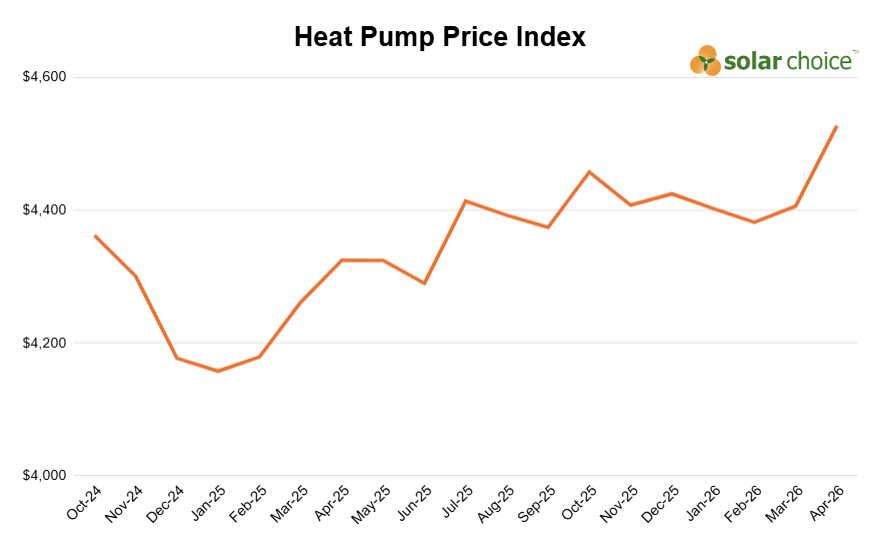 | Apr-26 | Average costs including STCs and Installation | Including State Rebates (upgrade from gas) | Including State Rebates (upgrade from electricity) |