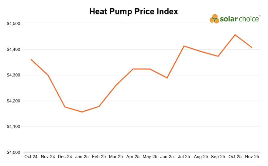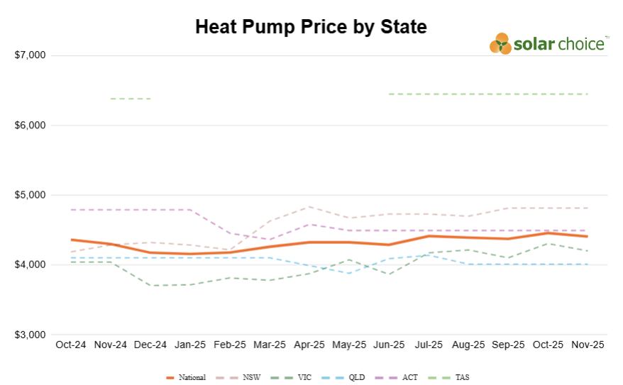 | Nov-25 | Average costs including STCs and Installation | Including State Rebates (upgrade from gas) | Including State Rebates (upgrade from electricity) |