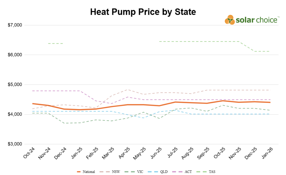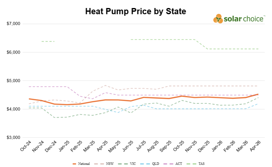 Based on our network of over 40 installers across Australia, we publish the average prices for heat pump hot water systems with a breakdown for each state. Solar Choice has also been publishing the average cost of solar panels and batteries in Australia since 2012.